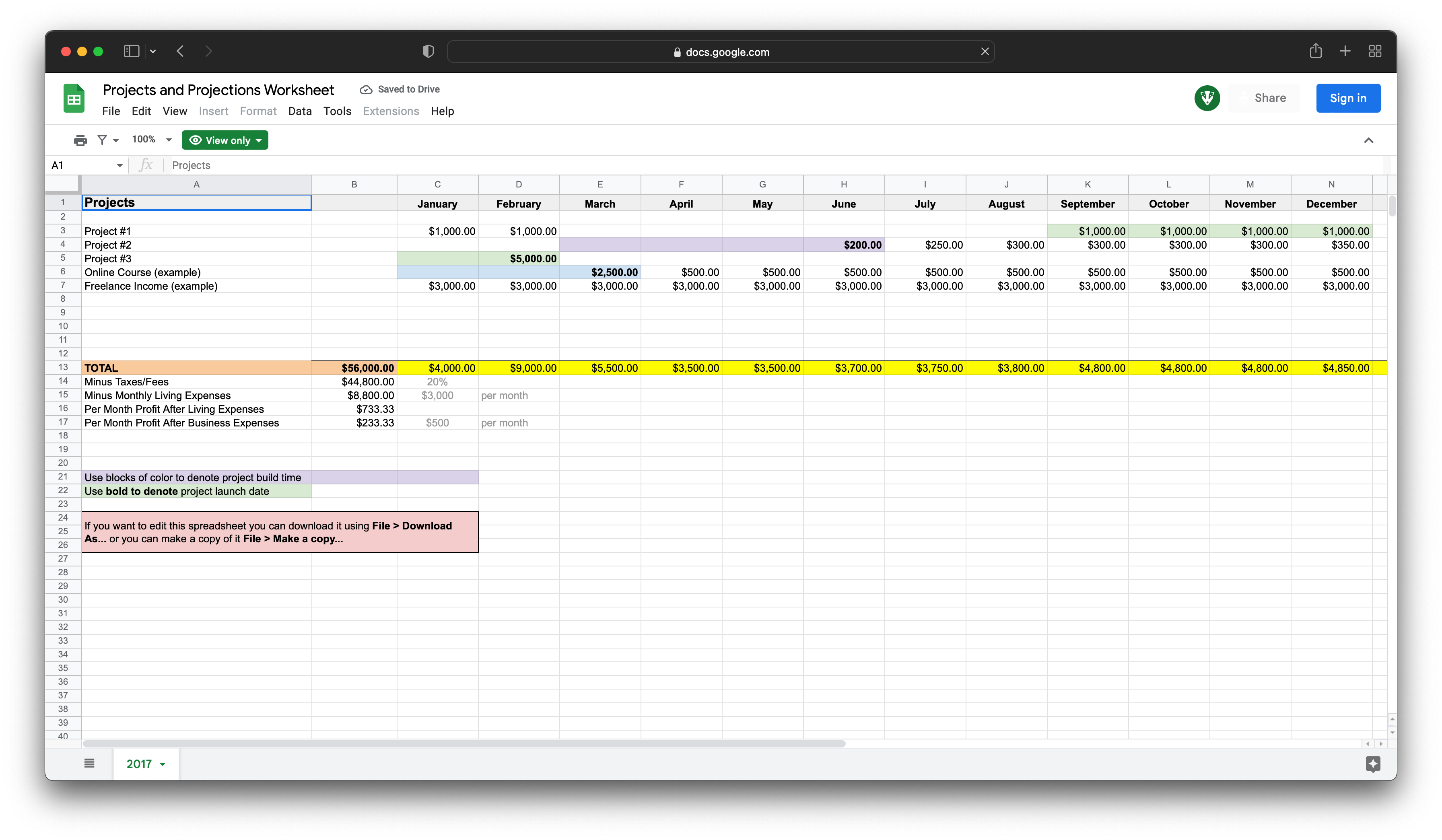 When you fill this spreadsheet out, you’re making an educated guess about the year ahead. Whatever your educated guess is about the future, it’s still a guess. Stuff happens, plans shift, and projects fall through.
