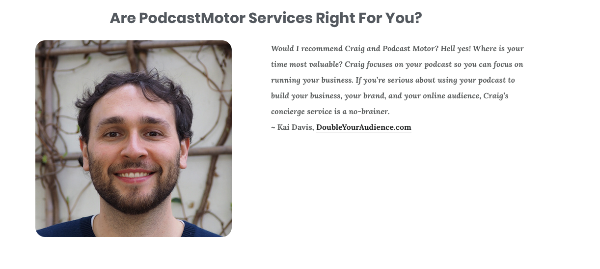 A short text testimonial is a short piece of text (two to four sentences long) that highlights some features of the service. It has a couple of the elements of a strong testimonial. The folks at Podcast Motor use this testimonial on their sales page for their podcast editing services :